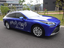 「FCV(Fuel Cell Vehicle、燃料電池自動車)」とは、水素と空気中の酸素を反応させて燃料電池で発電し、その電気でモーターを動かして走行する自動車です。