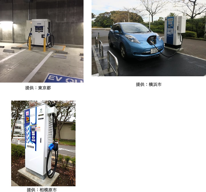 九都県市の各自治体では、各自治体の所有している施設に充電スタンドを設置しております。詳細は各リンク先をご参照ください。
